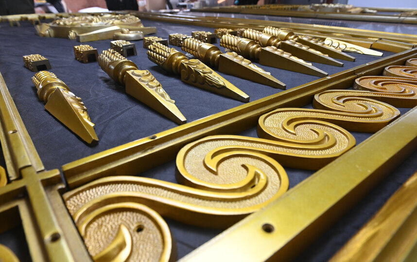 В пресс-службе пояснили, что детали решёток выполнены методом литья из разных металлов: в основном из анодированного алюминия, также встречаются латунь и бронза. Однако это более поздние детали – ремонтные вставки, появившиеся после открытия станции в 1955 году. Реставрация проводится по методикам, согласованным с КГИОП, с бережным подходом, чтобы сохранить исторический дух и строительные приёмы эпохи метростроителей 1950-х годов.