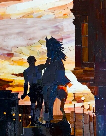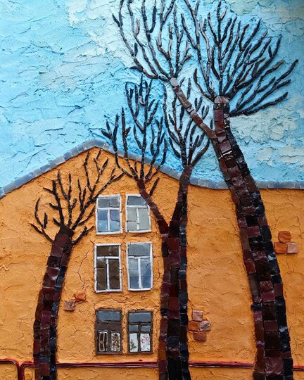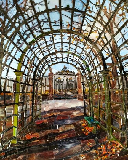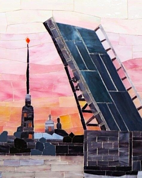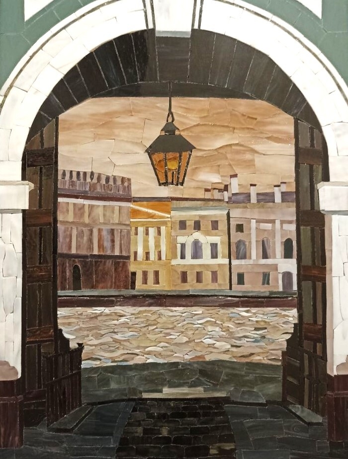 – Почти каждая работа – это личная история, – признается Светлана. – Некоторые из них сделаны по старым эскизам, кто-то использовал снимки из семейных архивов, другие вдохновлялись петербургской живописью. Есть работы, посвящённые конкретным людям – друзьям, учителям, близким. А есть те, что появились спонтанно: после прогулки, взгляда из окна трамвая или случайного поворота. В каждой есть что-то настоящее – не словами, а через цвет, форму и свет. Вообще, нам кажется, что из всех искусств, мозаика ближе всего к городу, потому что, как и он, она состоит из множества фрагментов. Улицы, дома, окна, свет, дождь, голоса – всё складывается, как кусочки мозаики. Её нельзя воспринять с одного взгляда – её нужно рассматривать как фасад старого дома, где каждый элемент важен. Мозаика замедляет и учит смотреть внимательнее. В этом её особенность: она позволяет увидеть город не на карте, а через ощущение и взгляд.