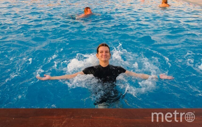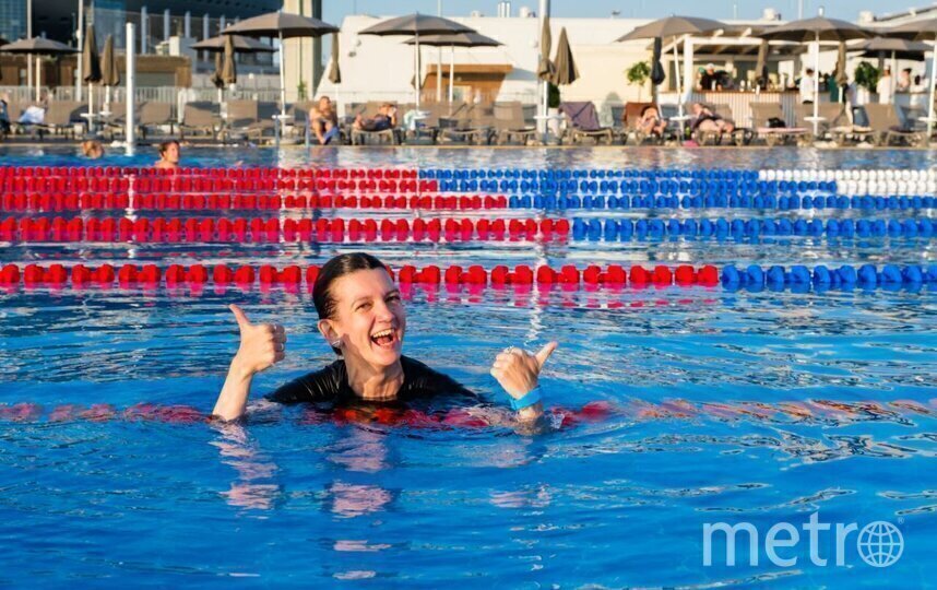 Мест для фото довольно много, всё-таки бассейн располагается над Финским заливом, вокруг вас ходят яхты и вёсельные лодочки, летают чайки – вид очень панорамный. Мой сеанс ещё был на закате, поэтому желающих сфотографироваться и отдохнуть у воды было больше, чем в воде. Сложилось впечатление, что почти все пришли именно за этим, а не для плавания – почти все посетительницы с укладкой, макияжем и в трендовых раздельных купальниках. Напоминало конкурс бикини, на который ты зачем-то пришёл проплыть дистанцию.