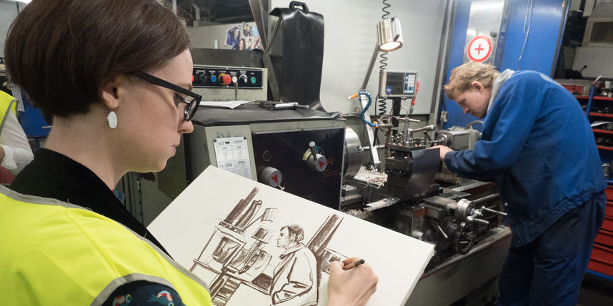 – Сегодня мы знаем, что все производства автоматизированы, но забываем, что они всё равно не обходятся без людей, – говорит художник Анна Аникина. – Мы рабочих в повседневной жизни почти не видим. Поэтому для меня было очень удивительно увидеть, что на заводах сегодня трудятся много молодых людей.