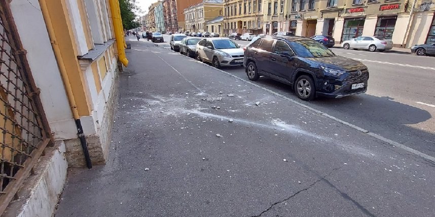 С дома по 8-й линии Васильевского острова Петербурга посыпался фасад. По словам очевидцев, штукатурка стала падать на тротуар.
