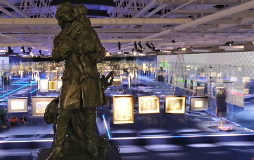 "Мы оказываемся между двумя масштабными видеопроекциями, в пространстве между двумя берегами Невы, – комментирует архитектор выставки Сергей Падалка. – С одной стороны открывается вид на Петропавловскую крепость, с другой – на Дворцовую набережную с Эрмитажем, картинной галереей которого Александр Бенуа руководил после революции. Где мы на самом деле? Может быть, на льду Невы или в каком-то другом пространстве. Но мы точно находимся в мире Бенуа. Здесь представлены его работы, эскизы к спектаклям. Пройдя через лабиринт, мы попадаем в кабинет Александра Николаевича. Атмосферу воссоздали по документальным фотографиям, использовали подлинные предметы мебели. По нашей задумке, кабинет как будто парит между первым и вторым этажами. А когда мы спускаемся вниз, то попадаем в сказочный мир "Азбуки".