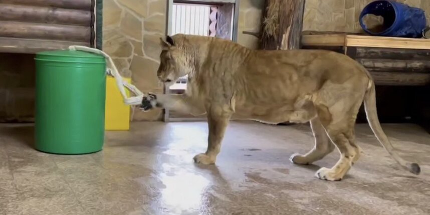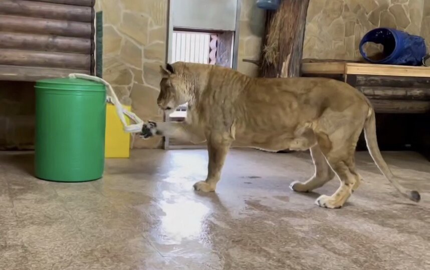 "Тася не стала терять время и сразу принялась исследовать новую игрушку", – сообщает пресс-служба зоопарка. К исследованию необычного предмета ненадолго присоединился и лев Адам, но вскоре вежливо уступил место виновнице торжества.