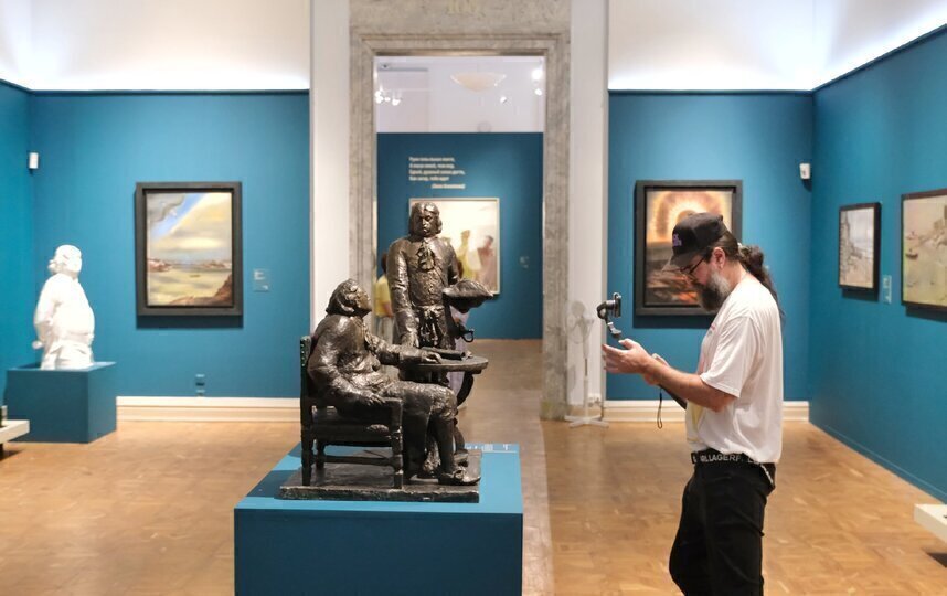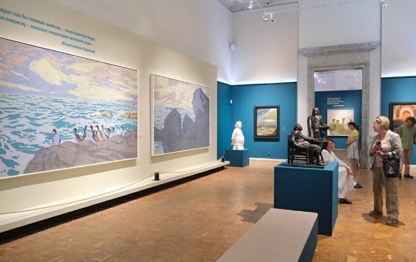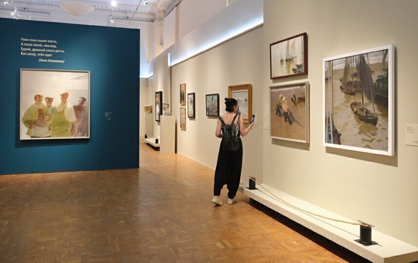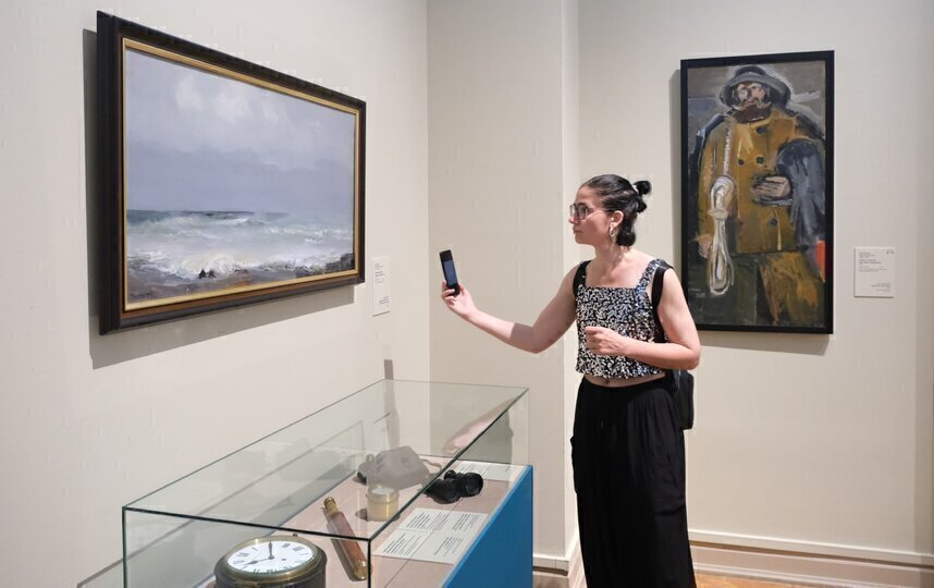 Внушительную коллекцию работ систематизировали по настроению. В один зал попали романтические изображения, в другом собрали картины, посвящённые северным морям России. Ещё одно пространство отдали рыбакам и морякам, которые героически осваивают море.