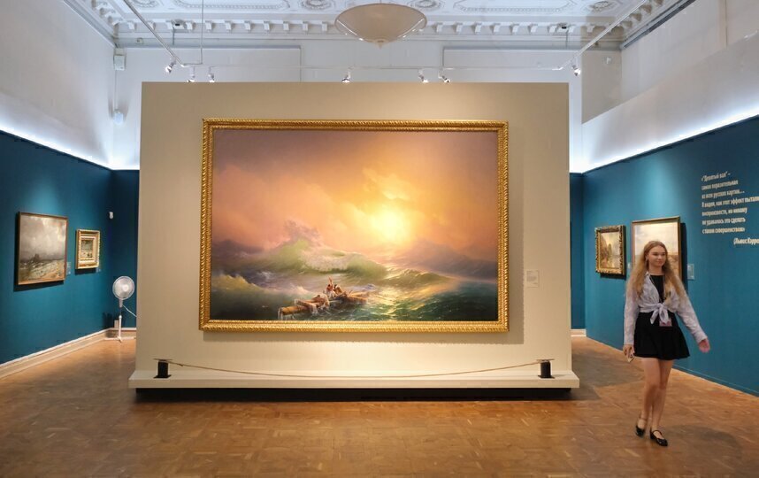 Творчество Ивана Айвазовского представлено всего несколькими картинами, среди них знаменитые "Девятый вал" и "Волна". О флотской будничной жизни рассказывают работы ученика знаменитого мариниста – художника и профессионального моряка Алексея Боголюбова.