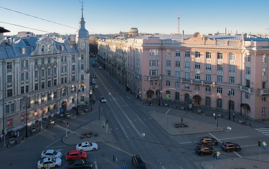 Вид с третьего уровня квартиры-мастерской на Австрийскую площадь и Каменноостровский проспект