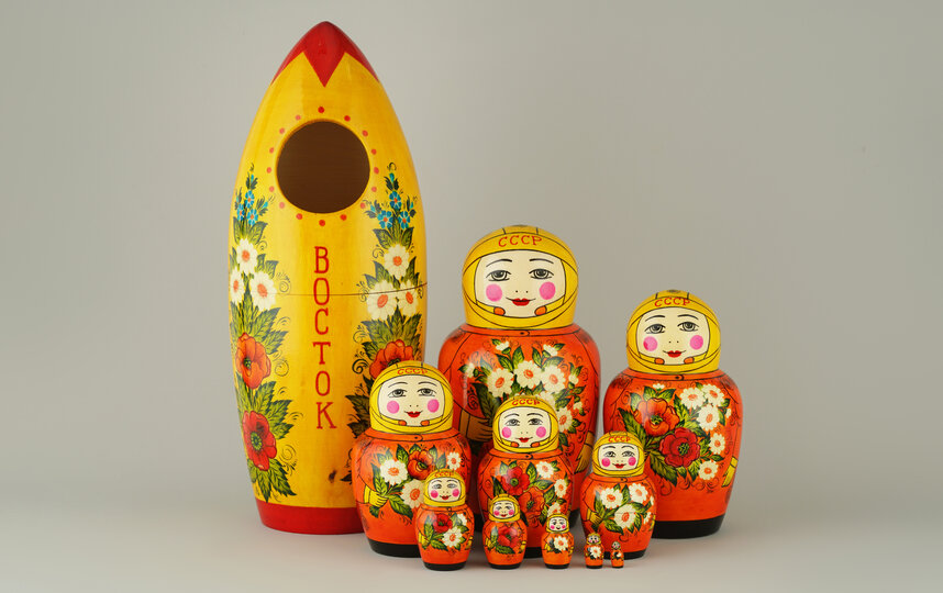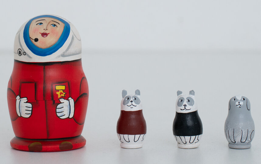 – Космическая тема, конечно же, затронула матрёшку. Есть у нас ракета "Восток" с 10 вкладышами. Есть потрясающая матрёшка-космонавт, в котором спрятаны Белка, Стрелка и Лайка. Её автор Виктор Никитин, ему 84 года. В прошлом инженер, теперь вся его семья в деле, – говорит Яна Козлова.