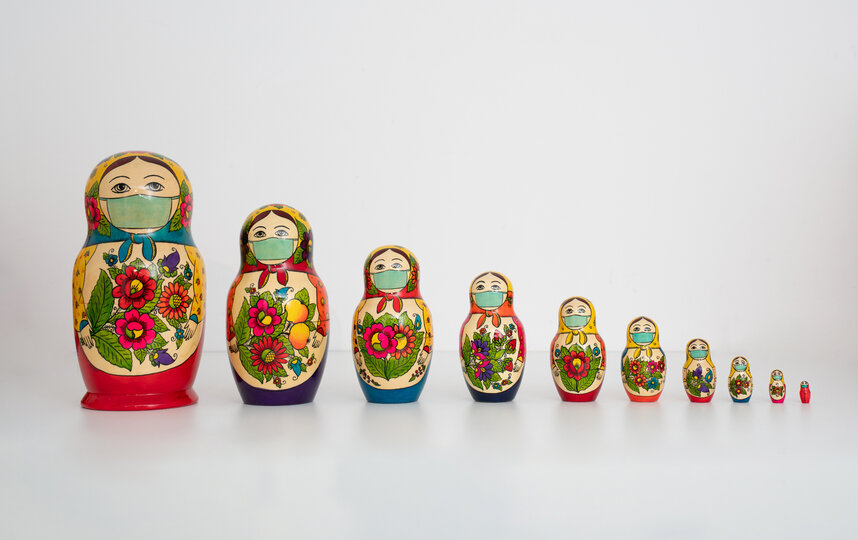 Ковидные матрёшки в масках, святые с иконами, матрёшки-эскимосы, а ещё панды и коты – чего только не увидишь на выставке.