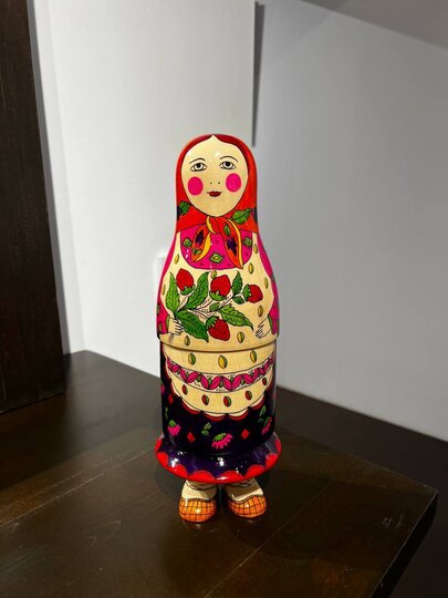 – Это были 80-е годы. Знаменитый магазин на Невском проспекте, 54 – "Три ступеньки вверх". Среди старой мебели была матрёшка, и я её приобрела. Даже не знаю, что это был за импульс! Позднее выяснилось, что это вятская матрёшка конца 1960-х – начала 1970-х годов. Инкрустирована соломкой – важная отличительная черта вятских матрешек, – делится с журналистом Metro коллекционер.