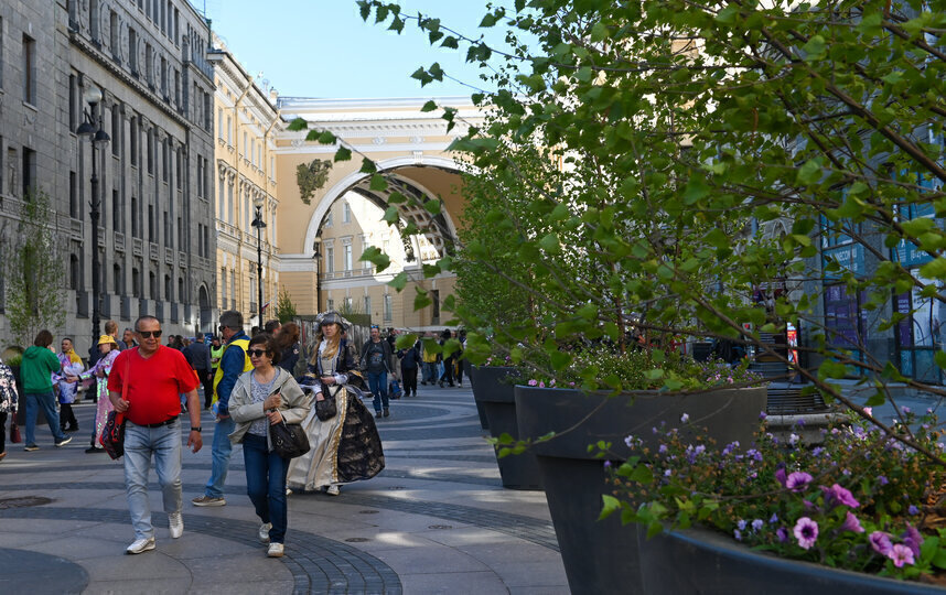 Первый сад-трансформер открылся на Синем мосту ко Дню города. К летним праздникам вазонами и кашпо украсили Невский проспект, Большую Морскую улицу, Университетскую набережную и другие локации в центре.