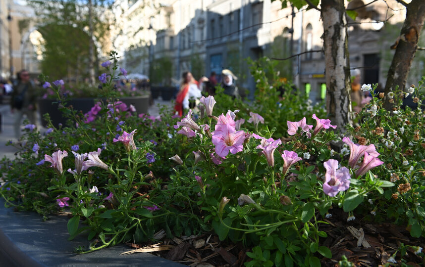 Центр города украсили вазоны и кашпо с растениями.