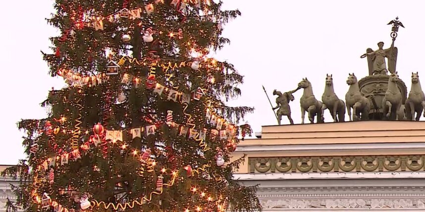 Дерево, привезенное 10 декабря из Копорского лесничества Ленинградской области, украсили в ностальгическом стиле. Оно весит более 10 тонн, а обхват его кроны достигает практически пяти метров. Теперь оно, полностью украшенное и освещенное, создает праздничную атмосферу в историческом центре города.