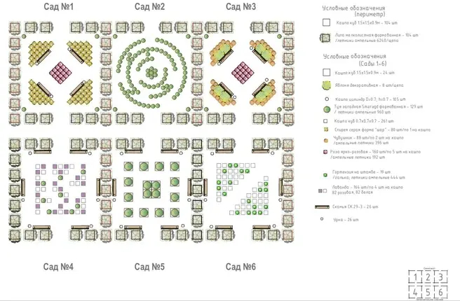 В сад на Синем мосту, разделенный на шесть секторов, привезут кадки с липами, яблонями, туями, спиреями, чубушником, розами, гортензиями и лавандой, а еще скамейки и урны.