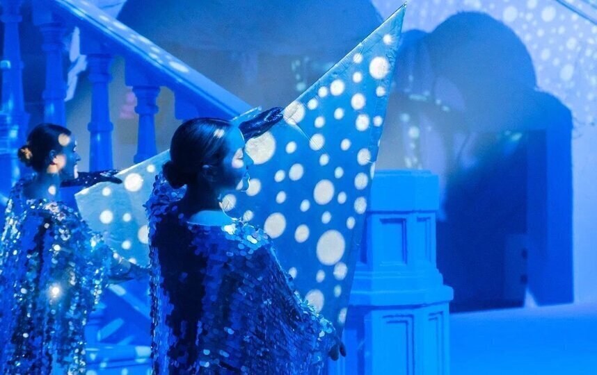 "Сначала думали сделать его разноцветным, - продолжает Дмитрий Хамидуллин. - Но наши художники-декораторы решили, что лучше покрасить стены в синий цвет и поиграть со светом. За счет разноцветных лучей возникает ощущение, что ты действительно попадаешь в сказку. Представление интерактивное, все зрители станут его участниками."