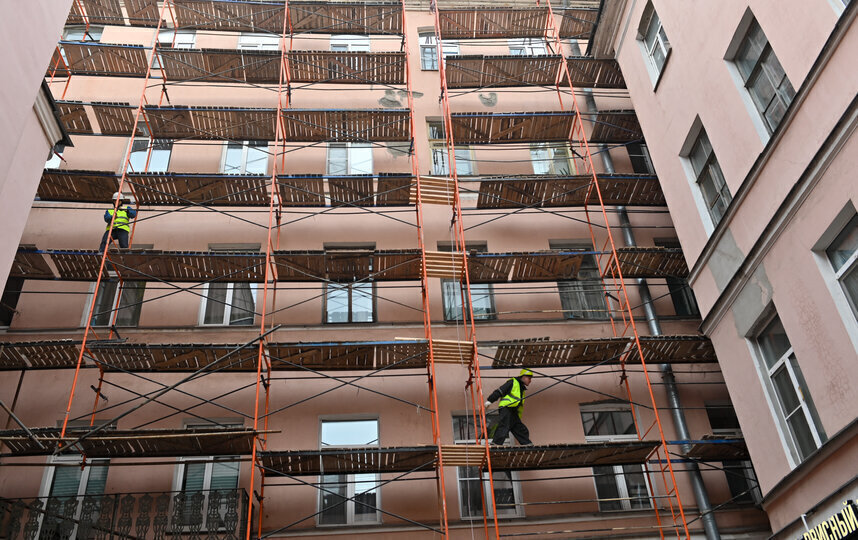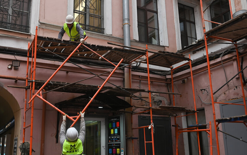Скрытые от глаз рядовых туристов фасады во дворах также облачаются в леса. Наблюдать за этим могут жители ремонтируемых домов.