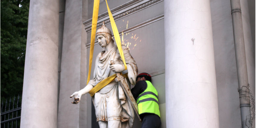 Скульптуры вернут на прежднее место с помощью манипулятора.
