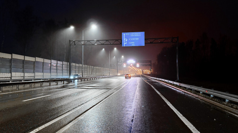 На одном из самых загруженных участков трассы теперь находится современное светодиодное освещение с дистанционным управлением. Общая длина освещенного участка составляет примерно 16 км. Освещение работает с 1 сентября этого года. Сейчас закончены все пусконаладочные работы и настройка оборудования, объект ввели в эксплуатацию.
