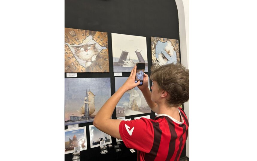 Автор картин – популярная в городе художница Людмила Чувиляева, известная также по живописным сериям "Котизм" и "Музорики". На её работах можно увидеть наш город и его знаковые достопримечательности глазами… котов. Вот один из них забрался на разводной мост, другой на "Лахта Центр", а третий вместе с тараканом наблюдает за двором-колодцем. Специально к выставке парфюмер Елена Даргель создала ароматы, которые у неё ассоциируются с изображениями.