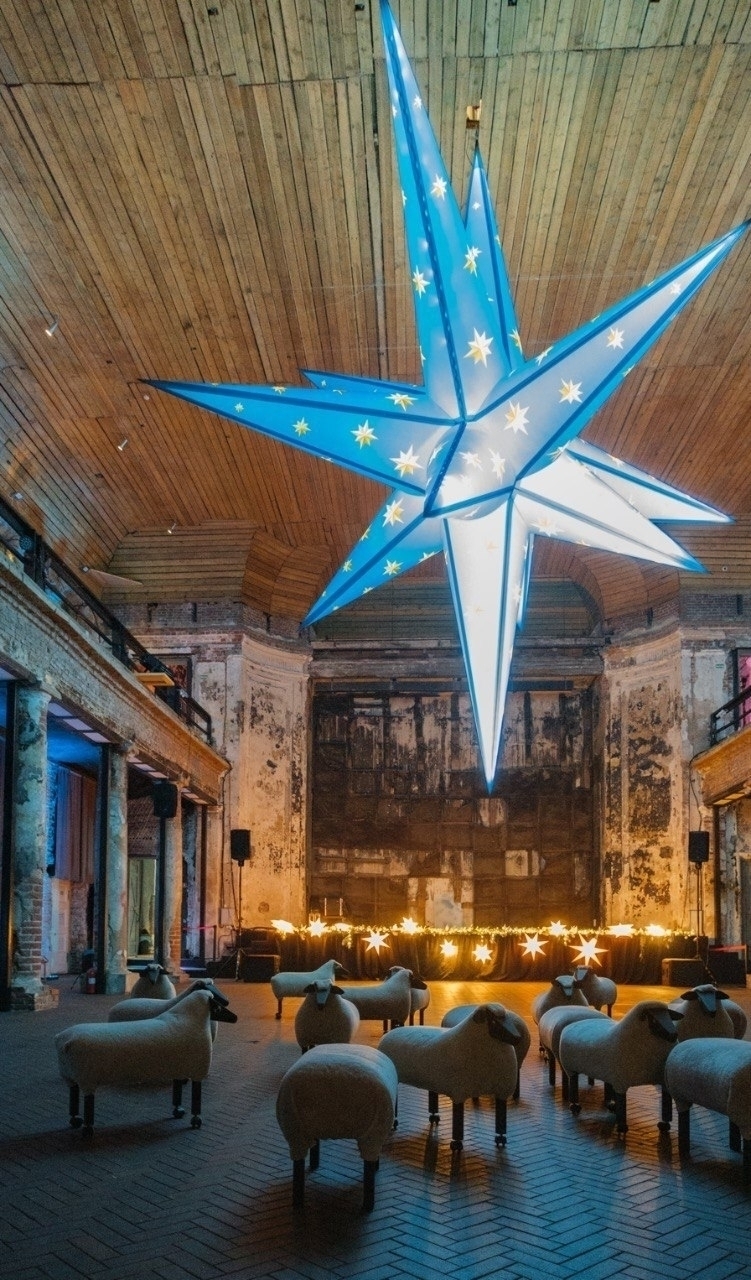В Богослужебном зале появилась огромная надувная Вифлеемская звезда. Посмотреть на нее можно, оседлав барашка. Все лавочки в этом году сделаны в виде кудрявых домашних животных. Они на колесах, так что заодно можно покататься по залу и узнать, почему если вас называют "овцой" - это не оскорбление, а, скорее, комплимент.