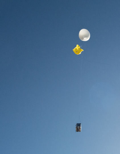 Ящик вынесли на крышу, прикрепили к воздушному шару и парашюту.