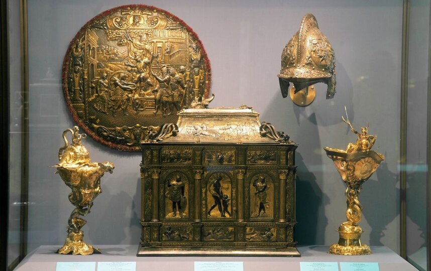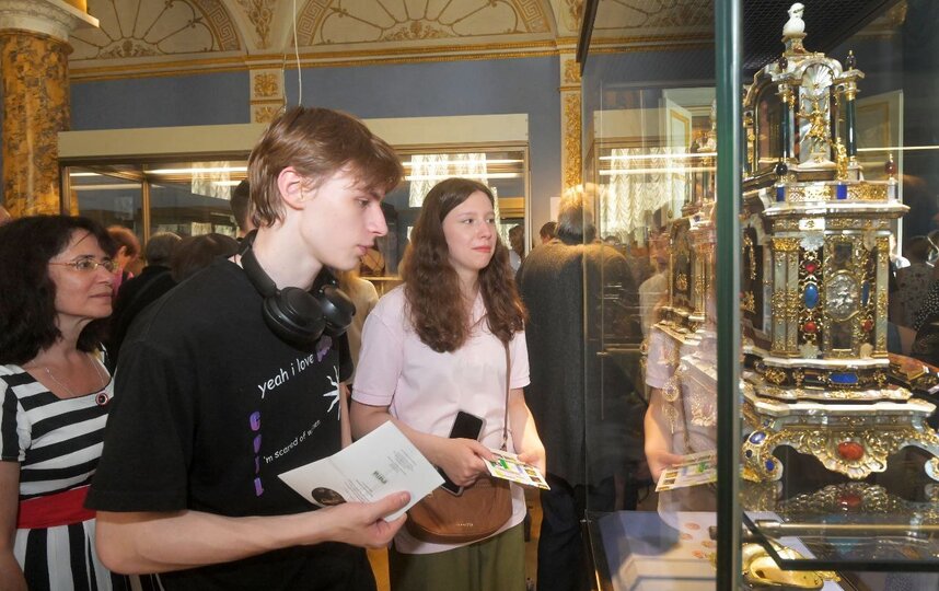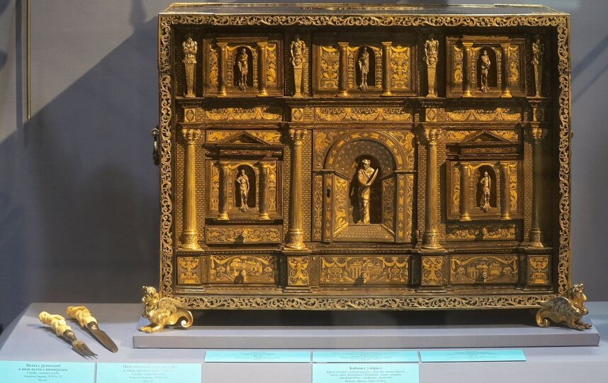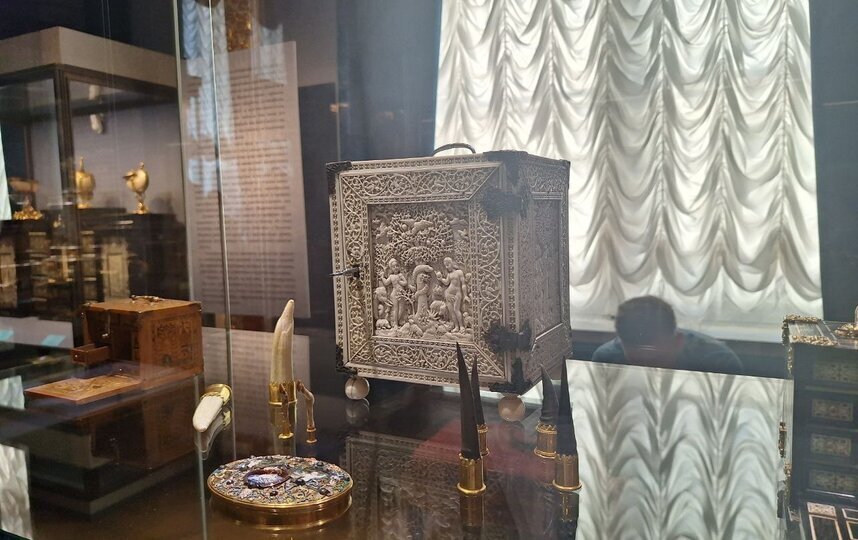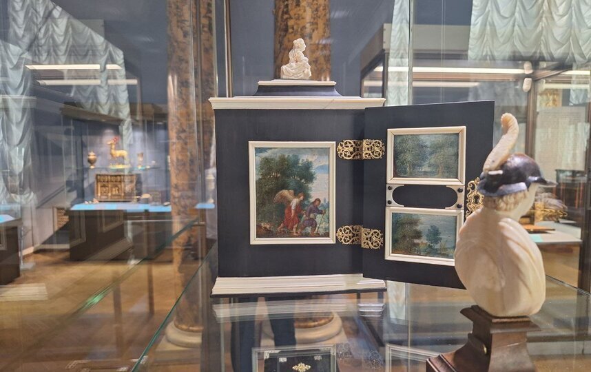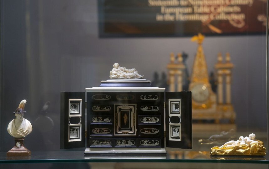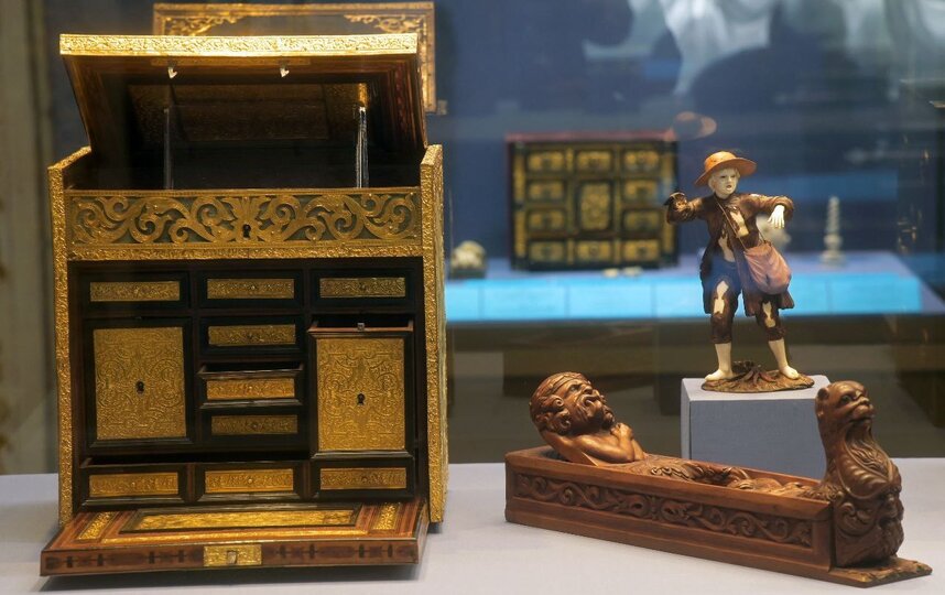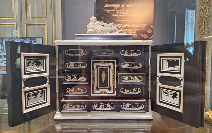 – Он сейчас раскрыт, но по правилам должен быть закрыт. Мы открываем створки, словно занавес, и видим миниатюры из слоновой кости – сцены охоты на медведя, кабана, оленя, – рассказывает сотрудница Эрмитажа. – Кабинеты можно сравнить с театром, который также зарождался в XVII веке. Здесь вы невольно становитесь действующим лицом, это же интерактивная игра! Хозяин открывает, и зрители удивляются!
