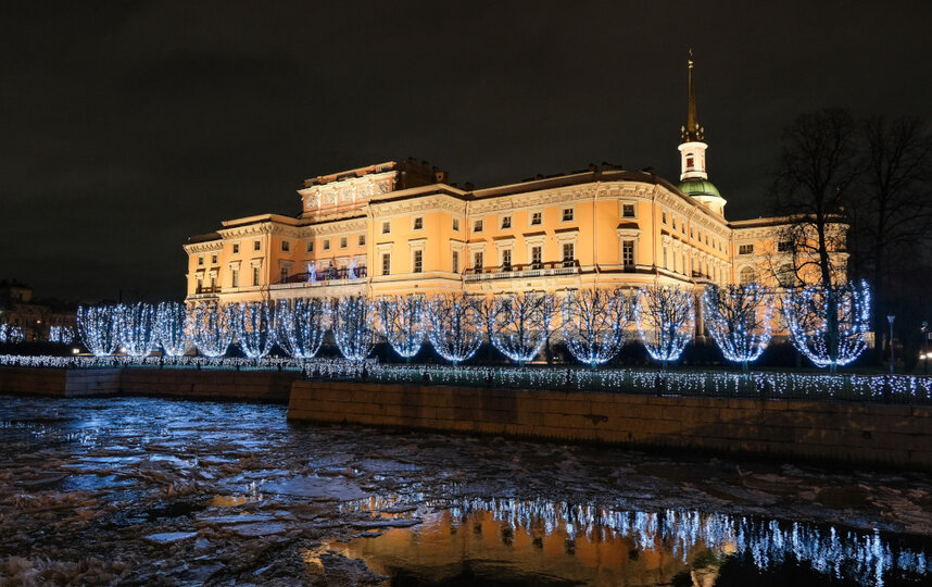 На фасадах одного из самых знаковых памятников города – Михайловского замка – установили 433 светодиодных светильника, которые подчеркивают облик здания XVIII века.