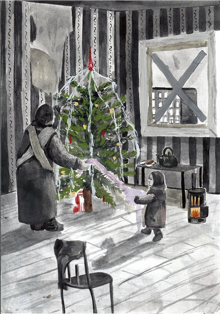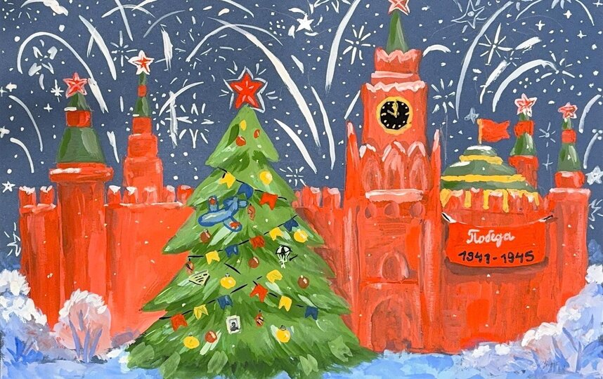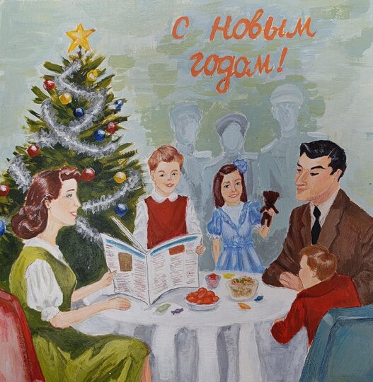Советская семья за праздничным столом, ребятишки у ёлки, снеговик под луной – участники конкурса совершили путешествие в XX век. По условиям, художники должны были изобразить подготовку или празднование нового, 1945 года. Из Петербурга прислали 1571 работу. Четыре жителя Северной столицы стали победителями. Их открытки представлены на выставке на сайте музея.