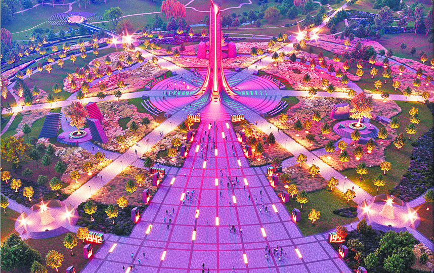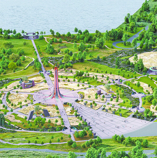 Гранитный обелиск высотой 40 метров визуально продолжит аллеи парка
