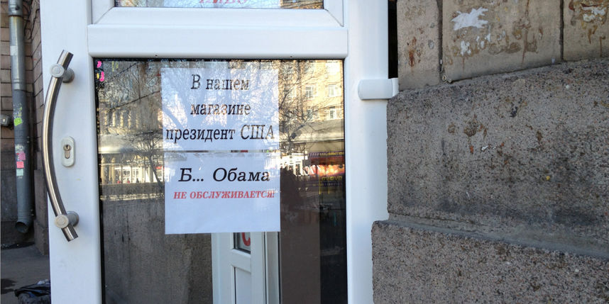 Напомним, Metro уже писало о московских бизнесменах, украсивших свои торговые точки подобными объявлениями, когда США объявили о введении санкций в отношении России после референдума в Крыму. Бараку Обаме запретили появляться в магазинах, ресторанах, пабах и даже аптеке.