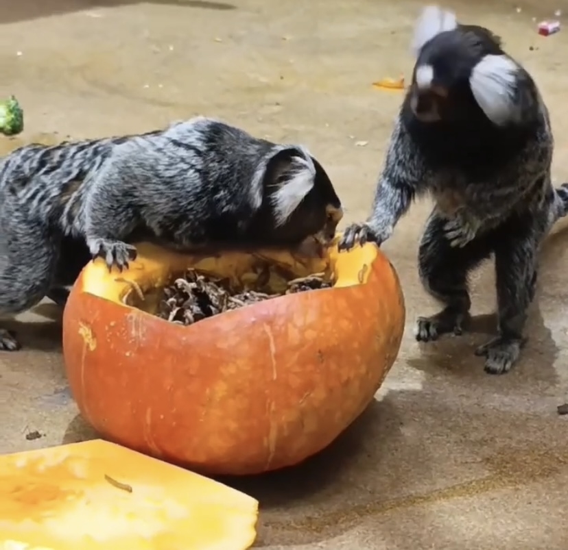 Как отметили сотрудники, сначала обезьянки отнеслись к новому предмету с осторожностью и изучали его издалека. Однако любопытство быстро взяло верх. "Стоило одной из игрунок смело подойти и исследовать тыкву, как её примеру мгновенно последовали и остальные члены группы", – поделились подробностями из зоопарка. Вскоре вся семья приматов с энтузиазмом выуживала из тыквы лакомых червей, чтобы каждый получил свой вкусный кусочек.