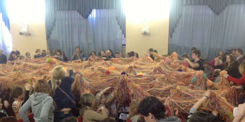 Будущие волонтеры продемонстрировали свои знания о столице предстоящих Игр, собрали карту олимпийского городка, а под конец из тысячи нитей соткали одеяло.