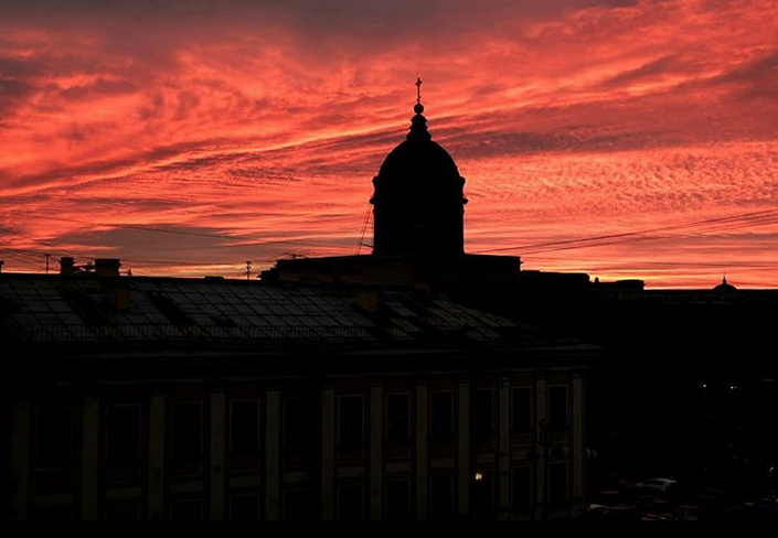 Один из трех выходных дней в Петербурге завершился красивым закатом. Горожане, кто шел после прогулки или по делам, успели запечатлеть кроваво-красное зарево.