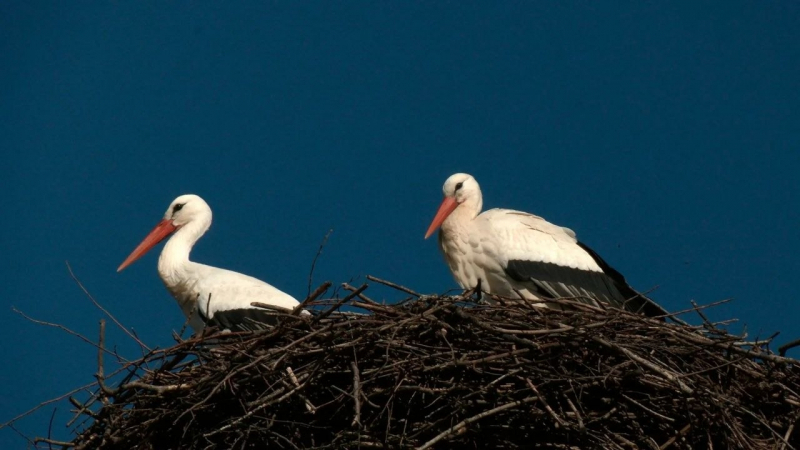 В Ленобласть прилетели первые белые аисты. Птиц смог сфотографировать биолог Павел Глазков.