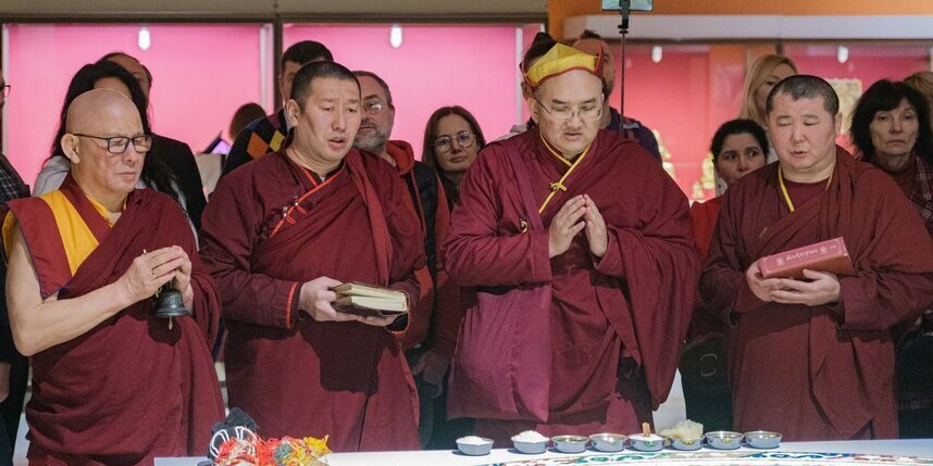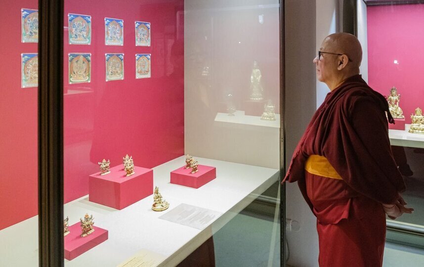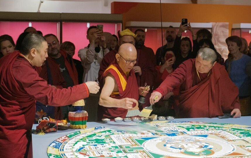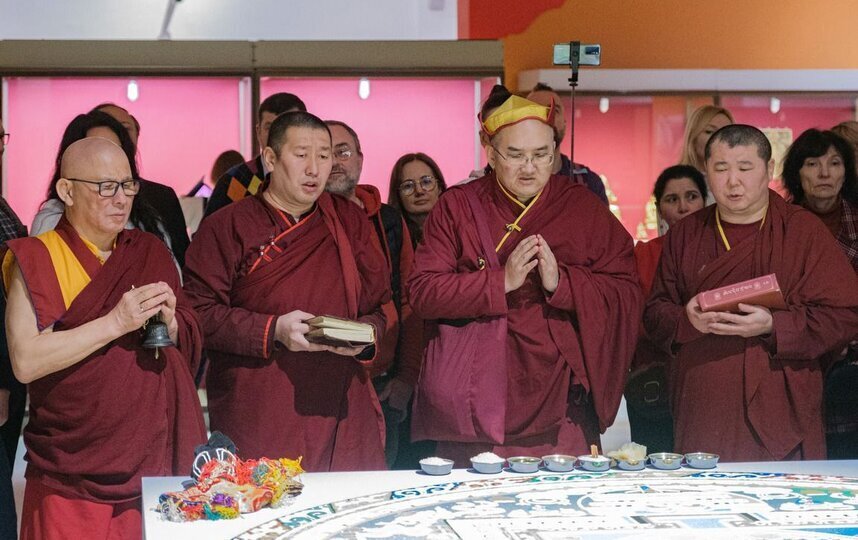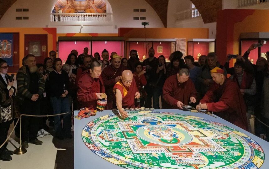Мандала занимала важное место на выставке "Драгоценность в лотосе": искусство тибетского буддизма. К 110-летию Санкт-Петербургского буддийского храма "Дацан Гунзэчойнэй".