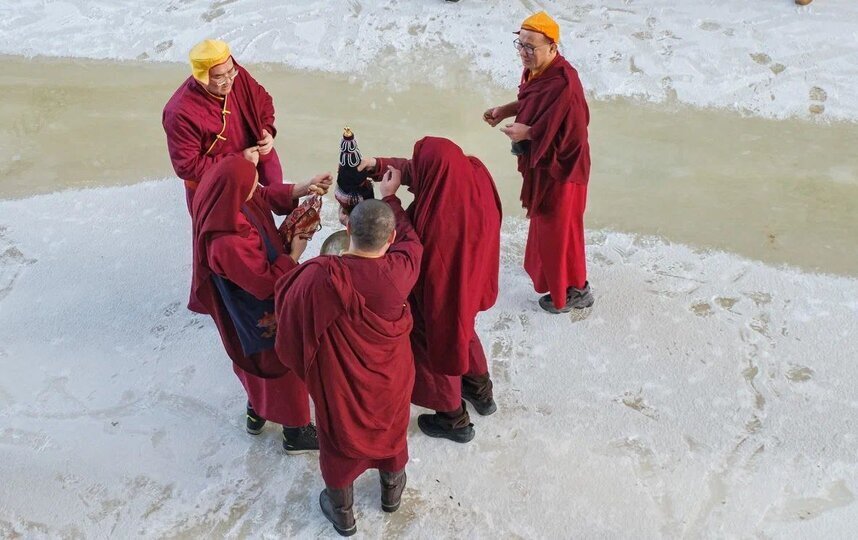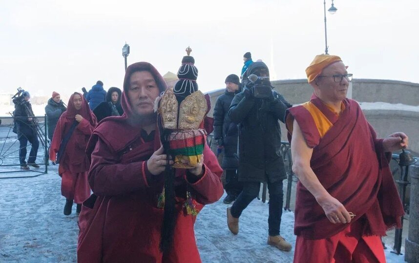 Перед началом ритуала ламы прочли молитвы, затем все элементы песочного дворца удалили в определенном порядке. По словам Буды Бадмаева, разбор мандалы демонстрирует иллюзорность мира. Цветной песок собрали в специальный кувшин – бумбу, завернули его в шёлк и перенесли к Зимней канавке. Содержимое бумбы высыпали в воду, чтобы рассеять целительные энергии мандалы среди живых существ в воде.