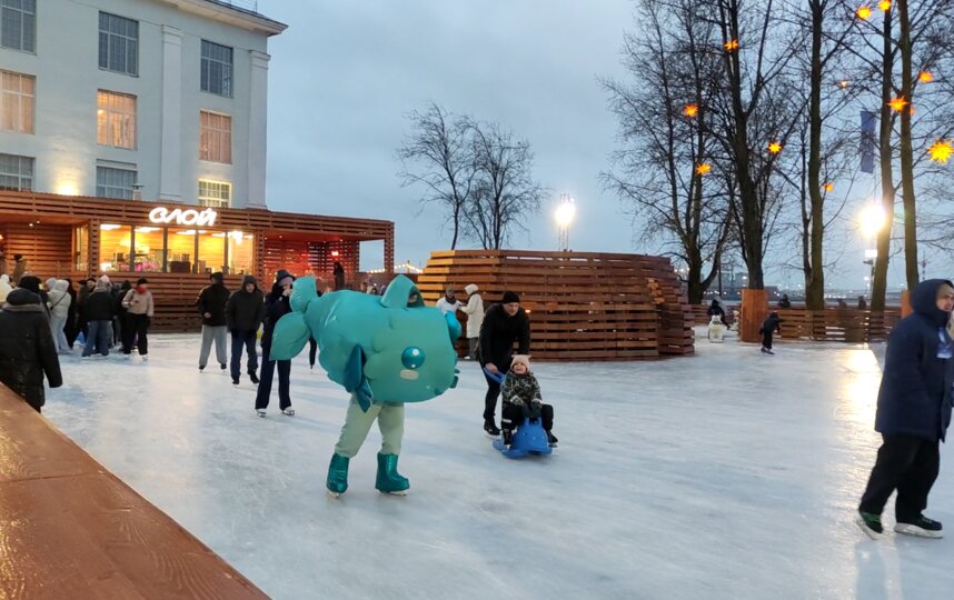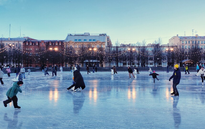 Покататься с видом на воду в Петербурге можно сразу в нескольких локациях. Это "Каток у моря" в пространстве "Севкабель Порт" (на фото), Лазерный каток в "Брусницыне" и "Каток у Флагштока" – самая большая площадка с искусственным покрытием в мире.