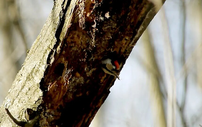 О том, что краснокнижный дятел облюбовал дерево на Октябрьской набережной в Петербурге и начал в нём строить себе дупло, рассказал в социальных сетях биолог Павел Глазков в понедельник, 13 апреля.