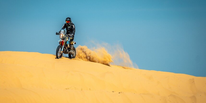– Во время первой гонки были многокилометровые песочницы. Это, конечно, очень сильно выматывает! На песке не отдохнёшь, там всё время нужно держать и контролировать вес тела определённым образом. Любая ошибка – это падение, за которым следует выкапывание мотоцикла. А он тяжёлый! Силы очень быстро заканчиваются. Одно падение может отнять сил на несколько часов гонки, – объясняет петербуржец.