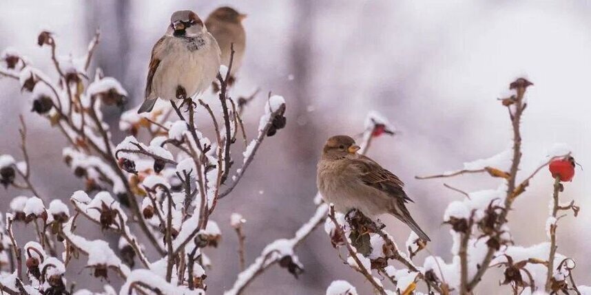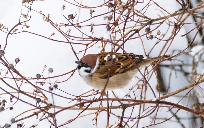 Зимой основная задача у всех птиц – пережить холодную ночь и дожить до утра, поэтому воробьи держатся мест, где есть постоянно работающая кормушка и густые кусты, в которых они чувствуют себя в безопасности. Большинство точек, где были отмечены массовые скопления воробьёв, находится рядом с оборудованной кормушкой, фермами, зернохранилищами. В начале февраля в хорошую погоду воробьи начинают активно вокализировать, и по громкому щебету из кустов их несложно найти во время мониторинга.