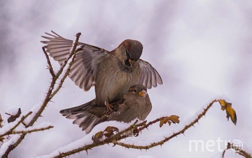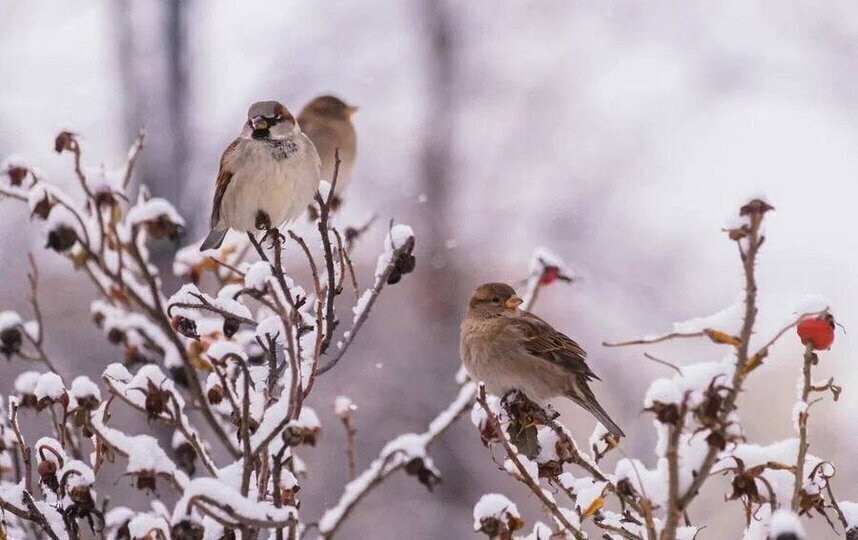 В этом году стайки воробьёв замечали не только на лиственных кустарниках, но и на ёлках и туях.