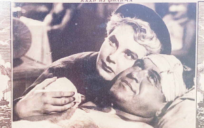 Открытка с киногероями из фильма "Танкер "Дербент"