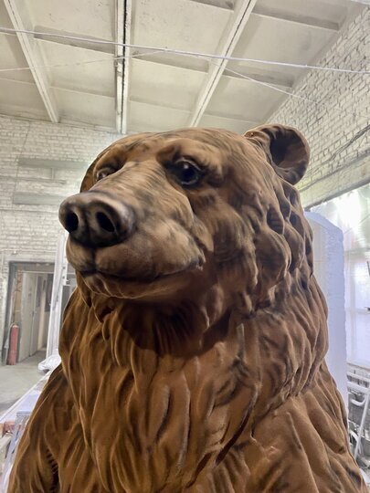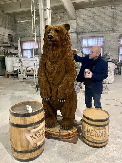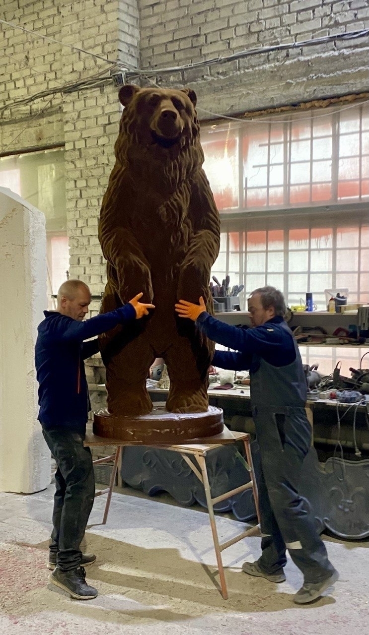 "Фигуру медведя создавали в несколько этапов, сочетая инженерную точность и ручную художественную работу. Сначала художники и скульпторы разработали детальный эскиз и трёхмерную модель будущего арт-объекта – с учётом пропорций, позы и выразительного характера персонажа. Важно было добиться ощущения силы и мощи, но при этом сохранить добрый, сказочный образ. Затем специалисты изготовили полноразмерную форму. Именно на неё послойно наносился стеклопластик – прочный, лёгкий и устойчивый к погодным условиям материал, – продолжает Михаил. - Для имитации шерсти использовали специальное ворсистое покрытие, которое придаёт фигуре реалистичный объём и "живую" текстуру. Затем медведя вручную расписывали профессиональные художники, подбирая оттенки так, чтобы цвет шерсти максимально напоминал натуральный окрас бурого медведя. В результате получился внушительный, выразительный и при этом удивительно добрый герой."