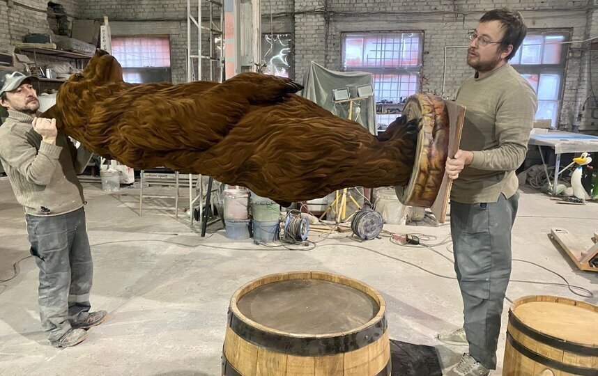 Медведь будет опираться на бочку с мёдом, а рядом установят бочку поменьше – на неё можно сесть и сфотографироваться вместе с новым арт-объектом.