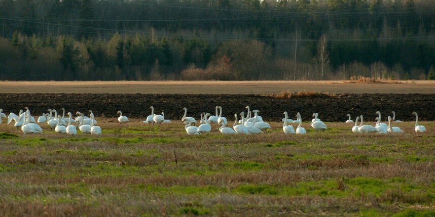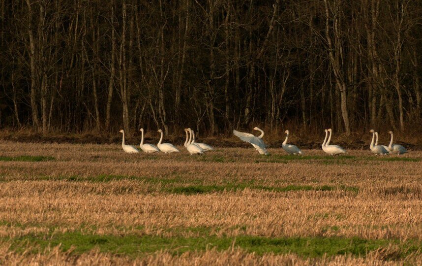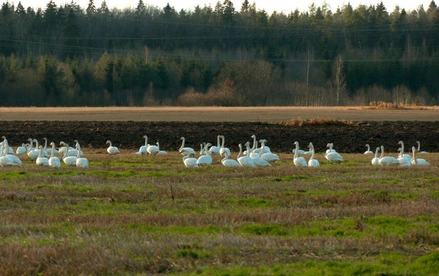 Осенняя миграция птиц подходит к концу, и в Волосовском районе Ленинградской области наблюдается уникальное скопление лебедей-кликунов. По данным биолога Павла Глазкова, на поле после уборки злаковых осталось много зерна, что и привлекло пернатых путешественников.
