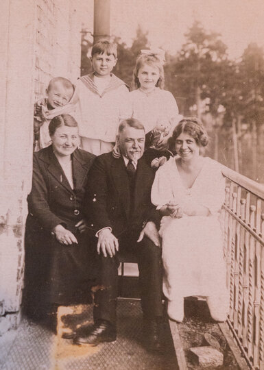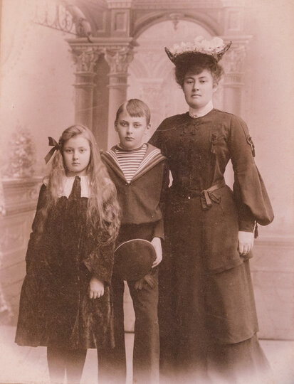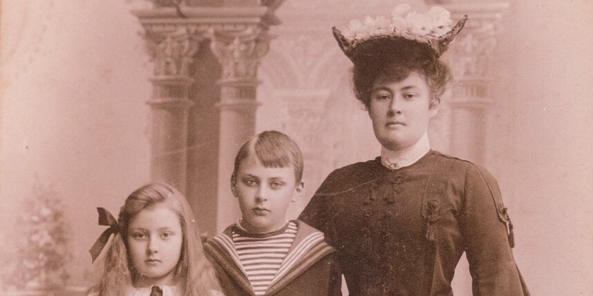 1920-е годы. Внучка Островского Мария (крайняя слева в нижнем ряду), правнуки драматурга Владимир и Мария (во втором ряду справа).