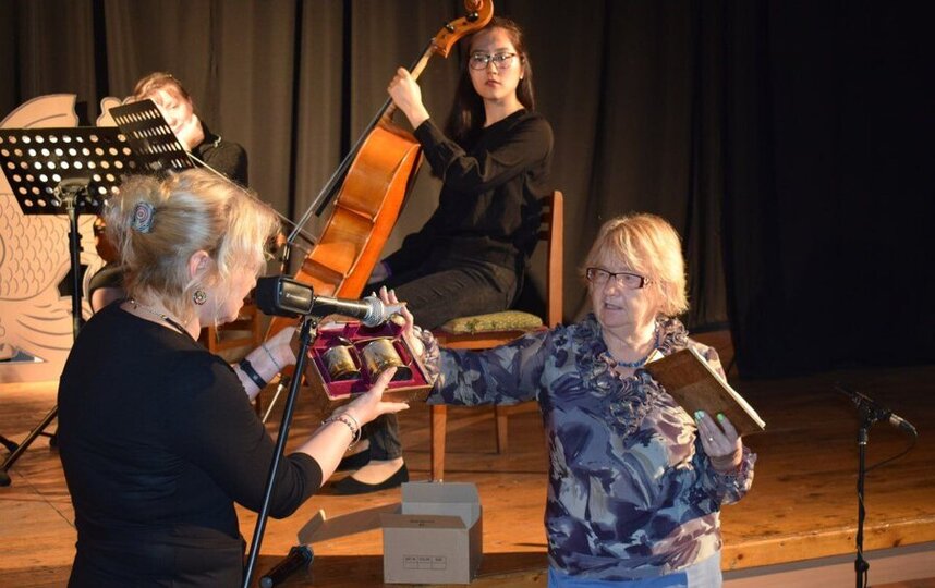 Ольга Черникова передаёт музею в Щелыково семейные реликвии – подстаканники, которые принадлежали Островскому.