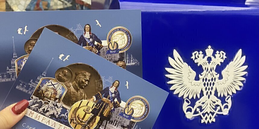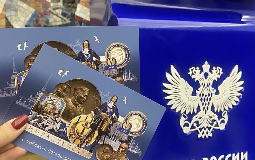 Дизайн открытки погрузил получателей в атмосферу Северной столицы и ее метрополитена. На ней изображены символы города и самой станции: Петр I, мозаичное панно "Адмиралтейской", а также красуется надпись: "С любовью, Петербургский метрополитен".
