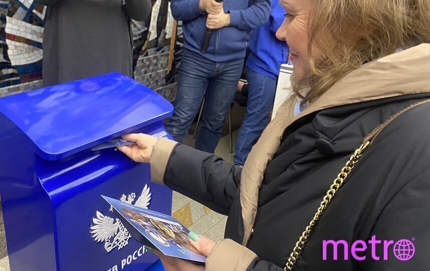 Прямо в вестибюле станции был установлен специальный почтовый ящик. Каждый желающий мог получить юбилейную открытку, подписать ее, наклеить марку и опустить в ящик. Далее все открытки будут направлены в отделение "Почты России" для доставки адресатам.