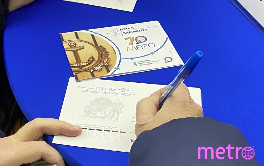 А для Веры эта открытка стала особенным поручением: "Я отправляю открытку сыну. Он учится в МГУ, и он с детства очень любит метро, ходил в музей метро. И когда он узнал, что есть такое событие, отправил меня, чтобы я ему обязательно прислала эту открытку".