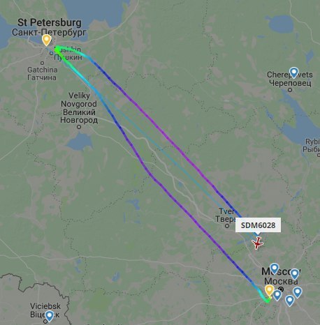 Рейс 6028 вылетел из Москвы в полдень 31 января, долетел до Пулково и развернулся назад. Это видно по картам сайта flightradar.live - самолет повернул в столицу, когда находился над Пушкиным, практически в 5 минутах от аэропорта назначения.